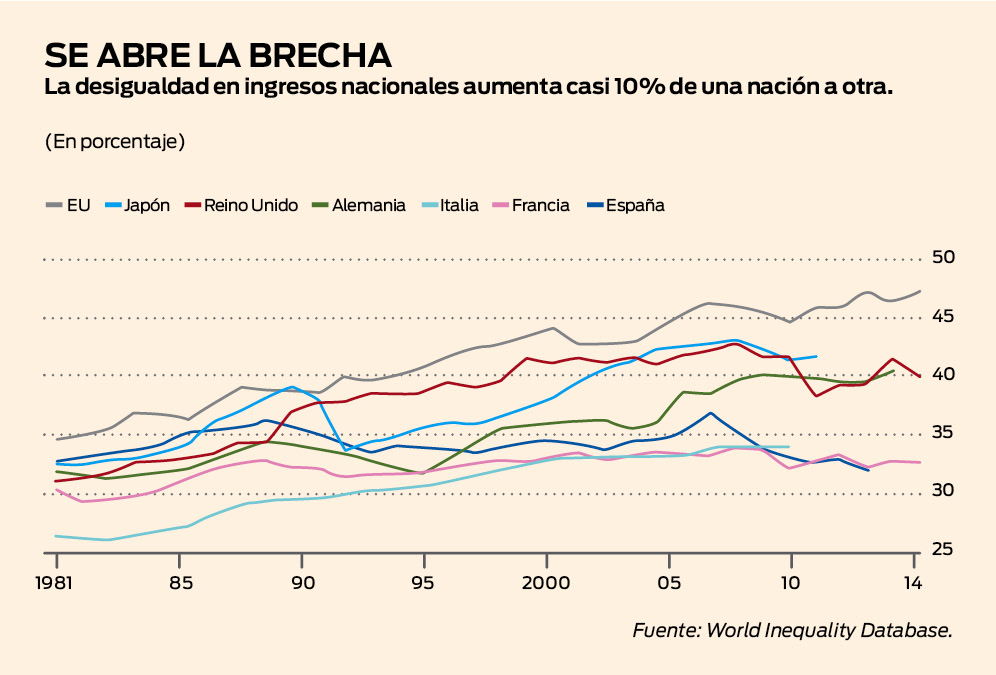es la brecha en los ingresos nacionales entre países desarrollados