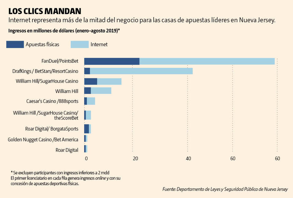 Para los recién llegados al mercado de apuestas, esto es demasiado bueno para ser verdad. “Es una oportunidad que se presenta una vez en la vida”, dice Jason Robins, director ejecutivo de fantasía DraftKings, que tiene la segunda mayor participación de ingresos de apuestas deportivas en Nueva Jersey. “Aquí hay un mercado que pasará a estar regulado, en la economía más grande del mundo”.