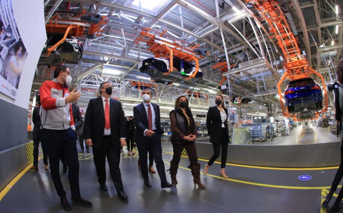 La segunda visita de Ebrard fue a la planta armadora de Audi, donde se ensambla el vehículo eléctrico más rápido del país. Ahí fue recibido por el presidente ejecutivo de la firma alemana en México, Tarek Mashhour; el vicepresidente de Recursos Humanos y Organización, Niels Bosse y el vicepresidente de Finanzas y Tecnologías de la Información, Christoph Herzig.