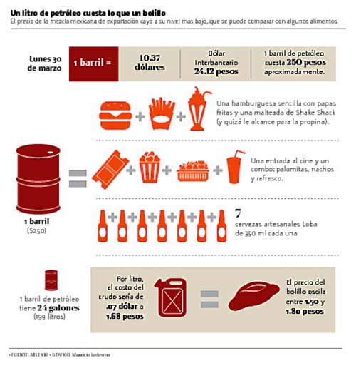 El pasado 27 de marzo la MME llegó a los 13.01 dólares por barril, una cifra no vista desde 2001, pero hoy se alcanza un nuevo mínimo desde el desacuerdo entre Rusia y Arabia Saudita por reducir la producción lo que provocó la caída en los precios del petróleo.