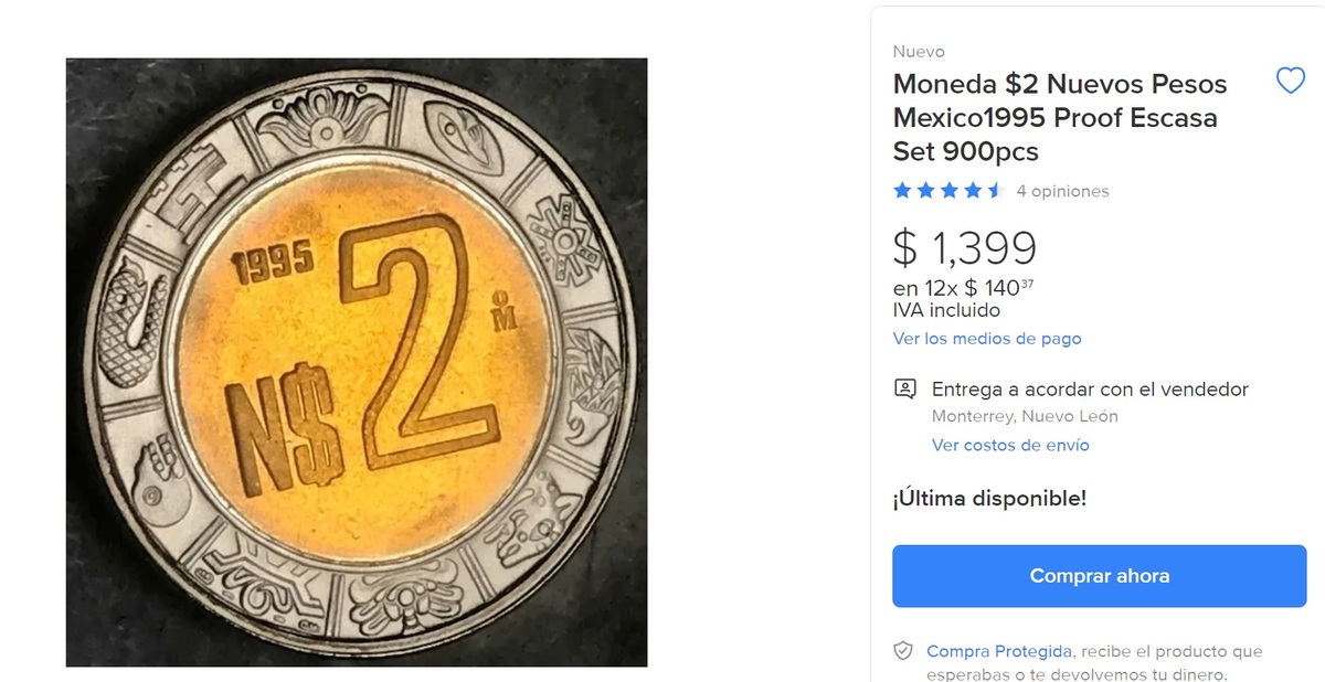 Las moneda de “Nuevos Pesos” se pusieron en circulación por primera vez en 1993, las cuales sustituyeron a los pesos antiguos que estaban vigentes desde 1980 y algunas de ellas han llegado a cotizarse en miles de pesos, como es el caso de una moneda de dos pesos que en plataformas digitales se vende hasta en mil 400 pesos, como es el caso de Mercado Libre.
