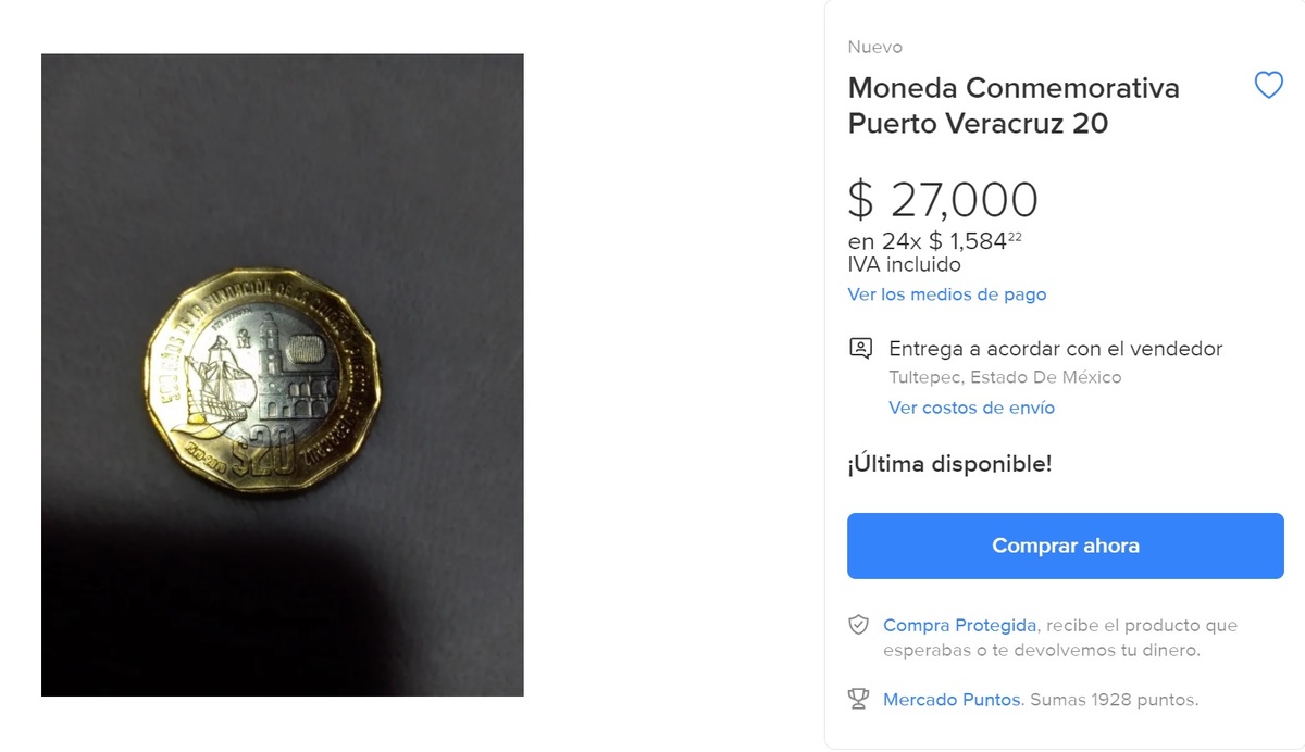 Desde hace más de un año, el Banco de México (Banxico) puso en circulación una moneda conmemorativa de 20 pesos por los 500 años de la fundación del Puerto de Veracruz, por lo que se puede encontrar todavía en circulación; sin embargo, debido a su belleza y forma dodecagonal se puede encontrar en plataformas de comercio electrónico por hasta 27 mil pesos.