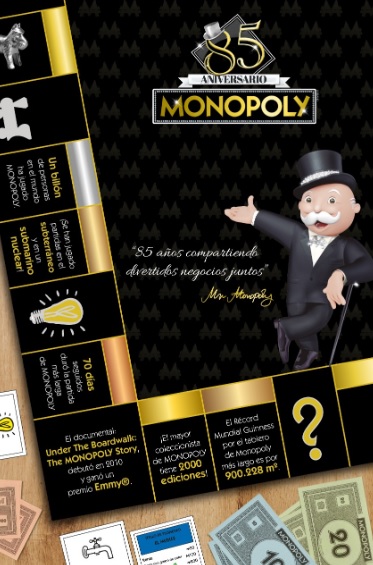Monopoly, el juego de mesa que ha hecho millonarios (aunque sea un par de horas) a un billón de personas en 114 países del mundo hoy cumple 85 años.