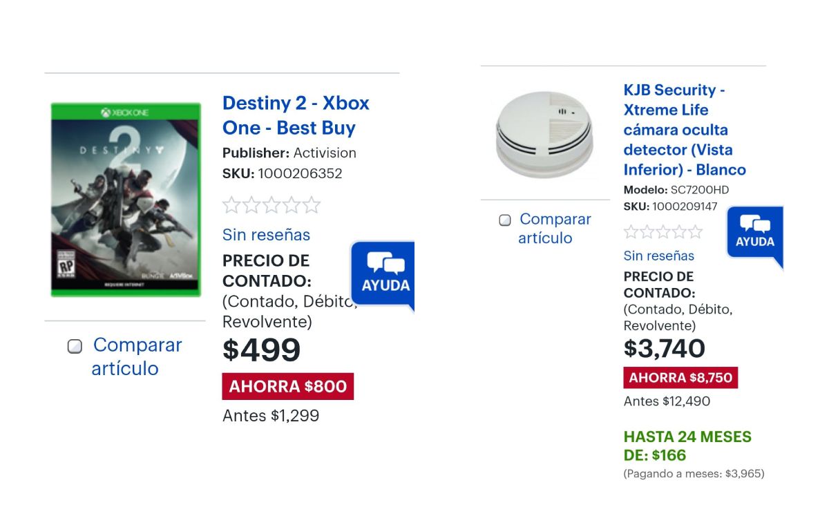 La página tiene descuentos de hasta 900 pesos en relojes deportivos; audífonos Panasonic, con descuento de 499 pesos; videocámaras como la Baby Cam BC30 de Garmin, con un descuento de 3 mil 749 pesos y un precio final de 799 pesos; entre otros. La empresa promociona en su página de internet descuentos de 50 por ciento y más en sus productos.