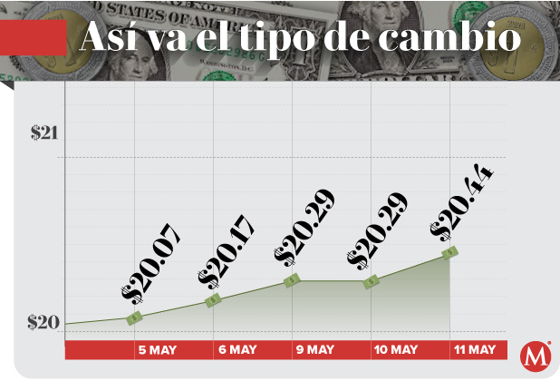 Banco Base publicó en su reporte que el peso inicia la sesión con una depreciación de 0.18 por ciento o 3.6 centavos, cotizando alrededor de 20.43 pesos por dólar, con el tipo de cambio tocando un mínimo de 20.23 y un máximo de 20.44 pesos.
