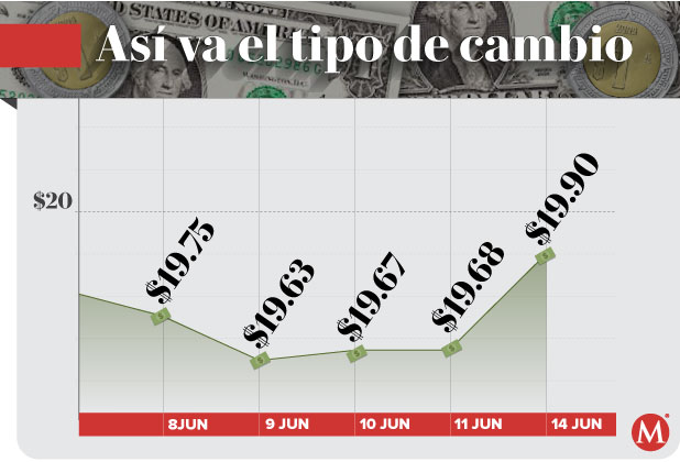 Al iniciar operaciones el precio del dólar hoy lunes fue de hasta 20.35 pesos en bancos. En tanto, el tipo de cambio interbancario se ubica en 19.90 pesos por dólar, con una pérdida de 0.14 por ciento.