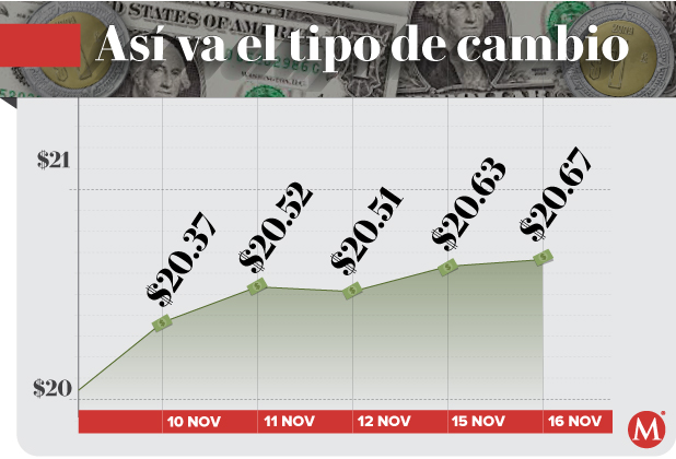 El Banco de México (Banxico) registró, en la sesión del viernes, un tipo de cambio de 20.50 pesos por dólar.