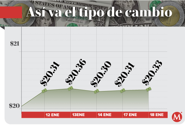El Banco de México (Banxico) registró la sesión previa un tipo de cambio de 20.30 pesos por dólar.