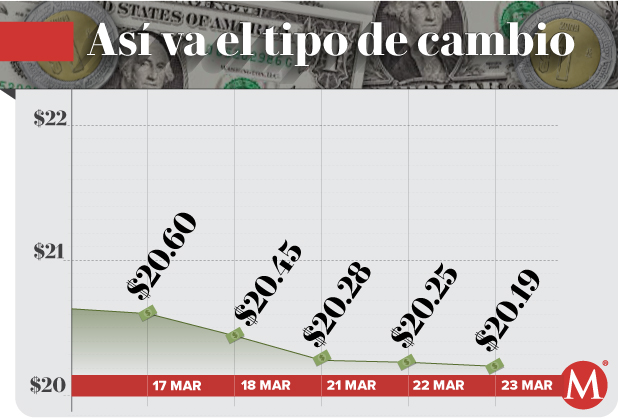Banco Base publicó en su reporte que el peso inicia la sesión con una apreciación de 0.19 por ciento, o 3.9 centavos, cotizando alrededor de 20.24 pesos por dólar, cerca del soporte clave de 20.20 pesos por dólar que, de ser perforado, podría llevar al tipo de cambio al mínimo en el año de 20.15 pesos por dólar.