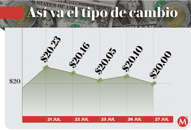 El Banco de México (Banxico) registró la sesión previa un tipo de cambio de 20.02 pesos por dólar.