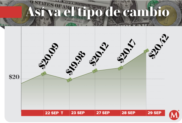 El Banco de México (Banxico) registró la sesión previa un tipo de cambio de 20.30 pesos por dólar.