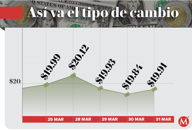 Durante la sesión, se espera que el tipo de cambio cotice entre 19.89 y 20.02 pesos por dólar.