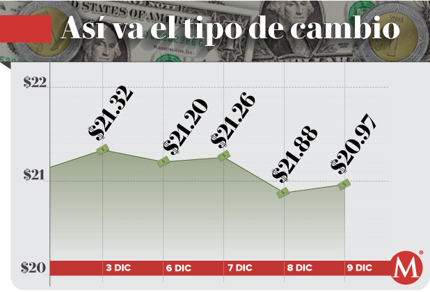 El Banco de México (Banxico) registró la sesión previa un tipo de cambio de 20.93 pesos por dólar.