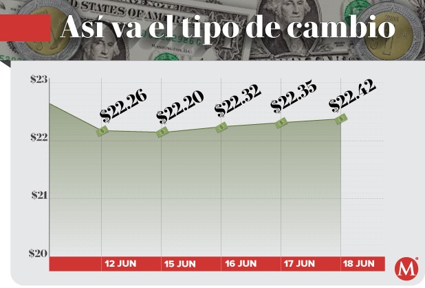 Citibanamex vende el dólar en 22.86 pesos, mientras que Banorte lo hace en 22.55, BBVA México en 22.25, Santander en 22.48 y Banco Azteca en 22.444 pesos.