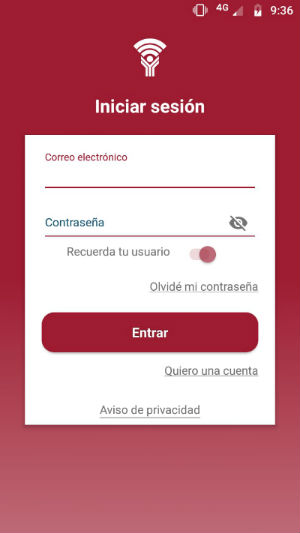 3. Una vez que te regístrate, ingresas en la pantalla de inicio tu correo y contraseña.