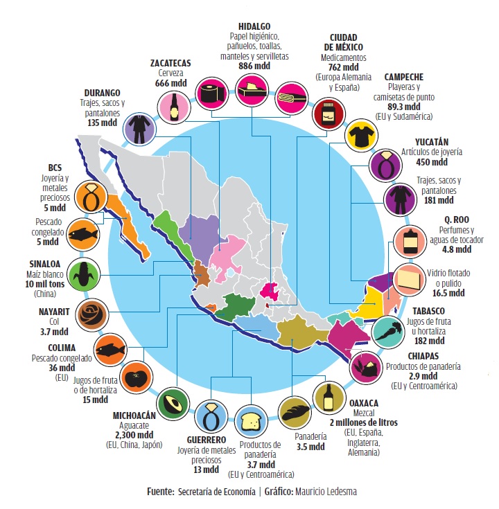 Dichos productos nacionales son impulsados desde estados que no tienen una gran vocación exportadora, toda vez que su principal fuente de ingresos son otras actividades económicas.