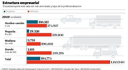 La Estadística Básica del Autotransporte Federal 2010, señala que en ese entonces había 94 mil 20 empresas consideradas hombre-camión. En 10 años este número creció 50 por ciento al sumar 56 mil 492 más.