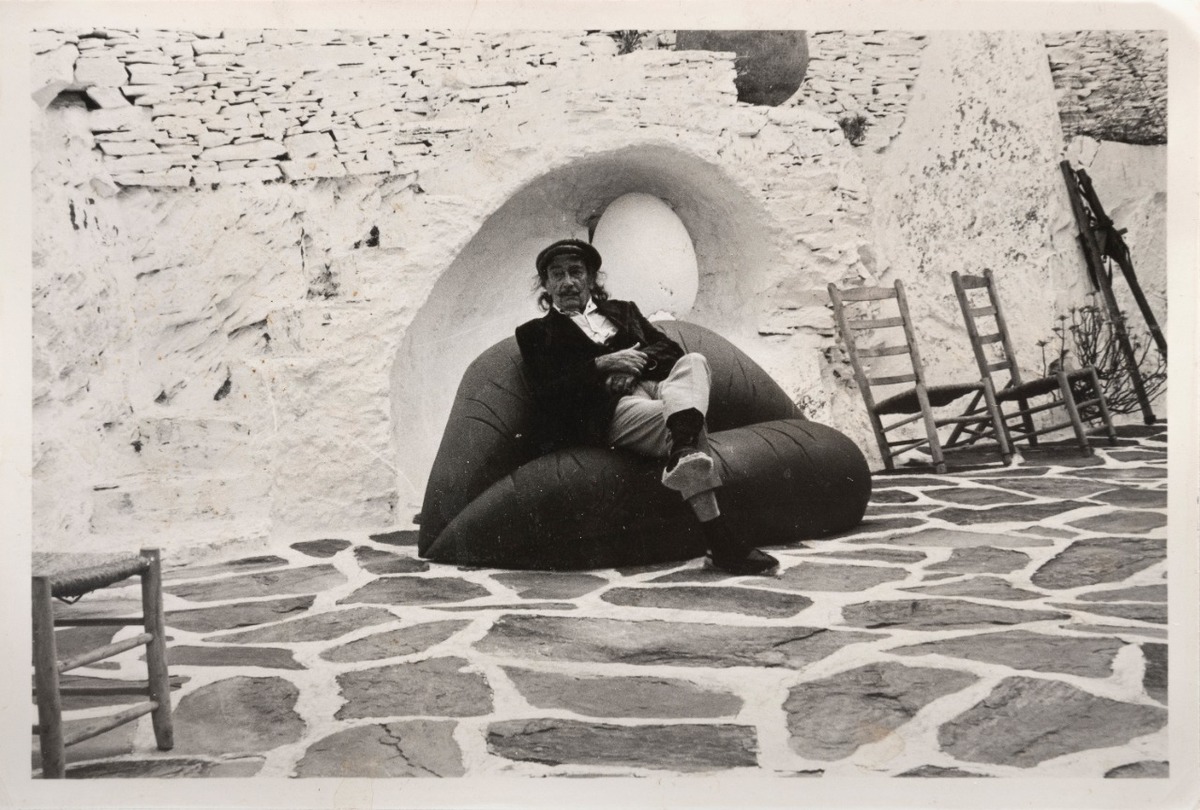 El sofá en el que está sentado Dalí en la fotografía fue construido por él mismo e inspirado en la cara de la actriz Mae West. El artista recreó en un cuadro un espacio físico con los rasgos de Mae y el sofá semejante a los labios del cuadro fue construido en físico
