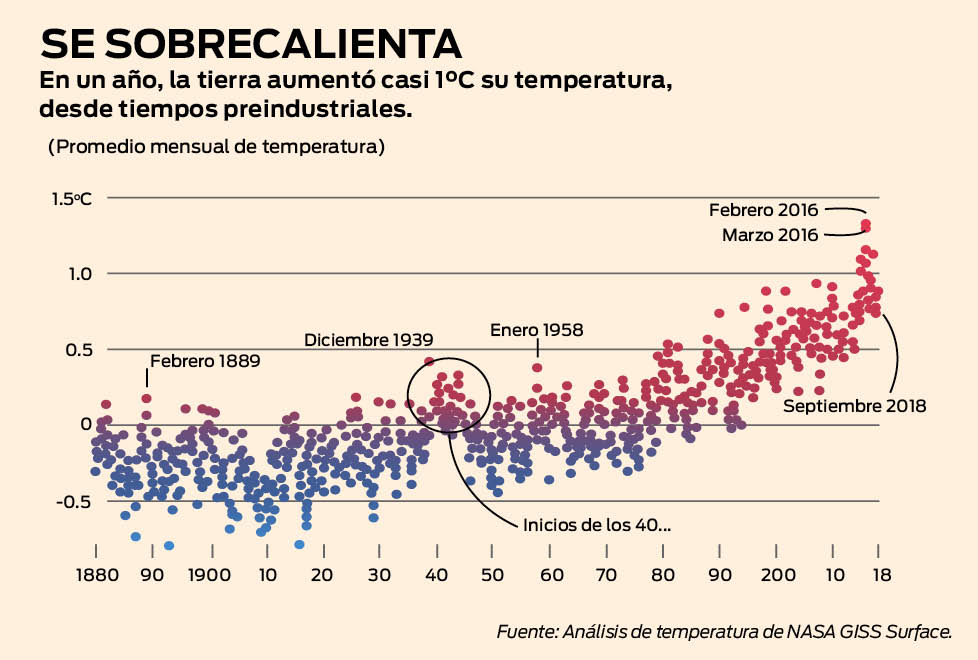 Una serie de desastres naturales e incendios forestales destacaron este año: el mundo se calentó 1°C desde los tiempos preindustriales. De acuerdo con un informe de la ONU en octubre, incluso 2°C de calentamiento tendrían consecuencias devastadoras para la tierra en un futuro.
