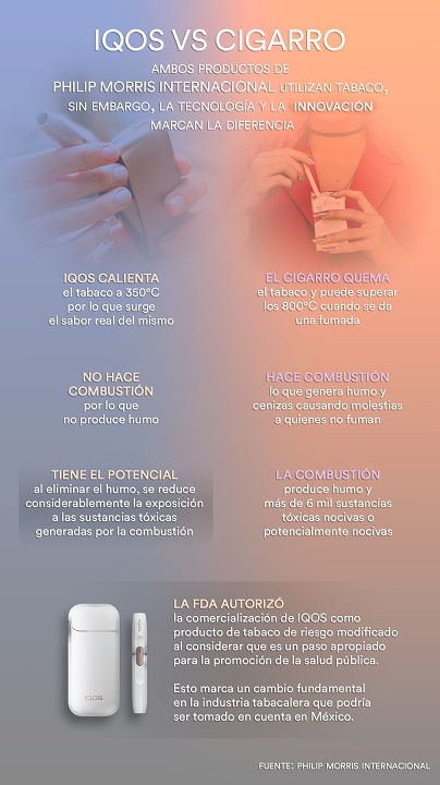 En 2019, la compañía trajo a México esta nueva tecnología que calienta el tabaco en lugar de quemarlo y con ello, reduce drásticamente los niveles de sustancias tóxicas del humo de los cigarros. A diferencia de otros productos, IQOS no es un cigarro electrónico o un vaporizador, y es fundamentalmente distinto a un cigarro convencional.