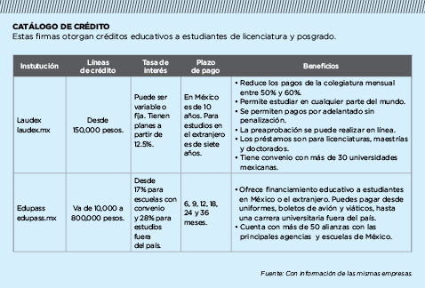 puede cubrir y, al mismo tiempo, le ofrecemos un plan de pagos”, señala Vicente Gutiérrez, director de Finanzas de Laudex, empresa que en ocho años ha otorgado cerca de 11,000 créditos educativos en 40 universidades de México, con una línea promedio de crédito de 150,000 pesos.