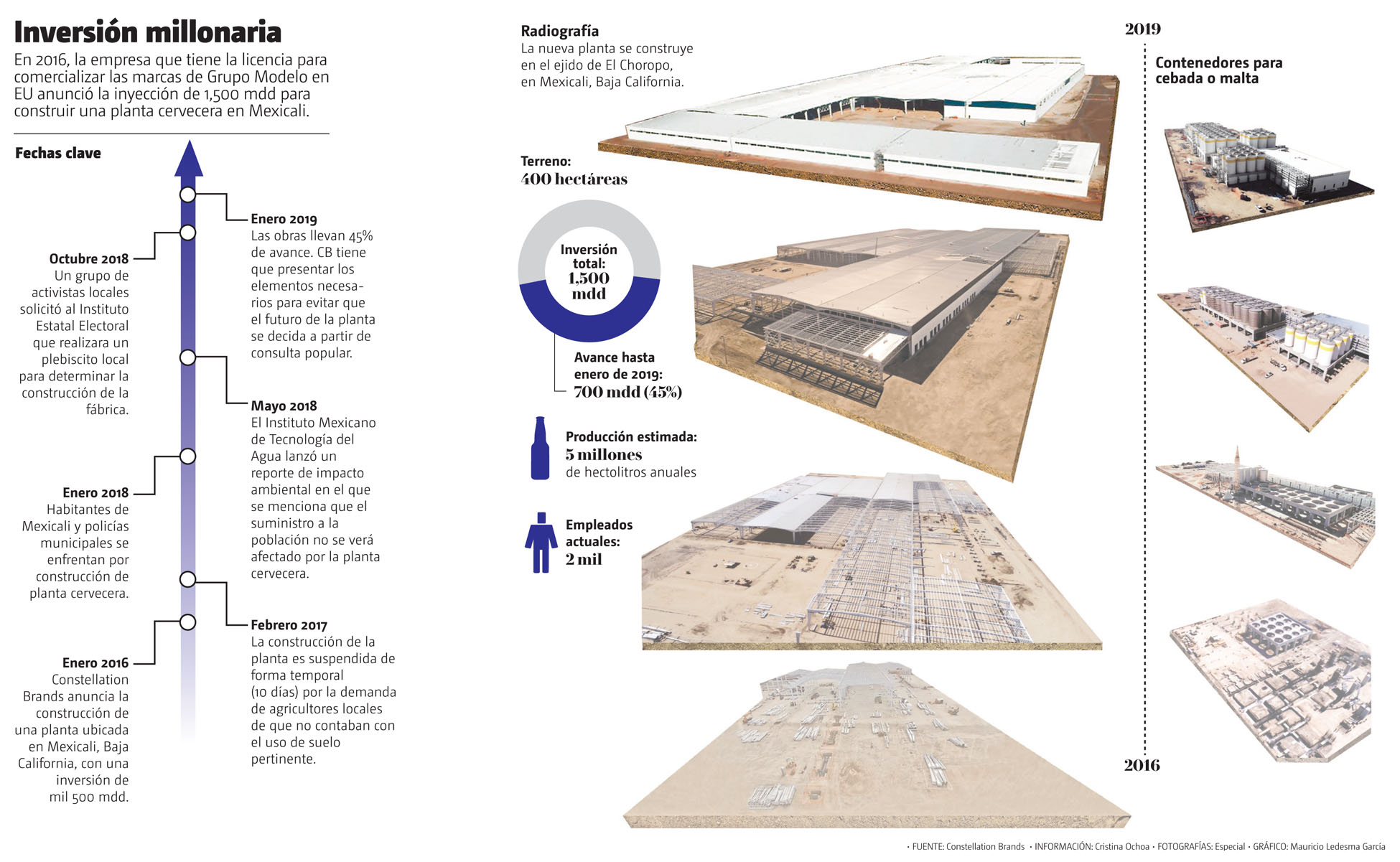 En enero de 2016 Constellation Brands, empresa que tiene la licencia de venta de las marcas de Grupo Modelo en Estados Unidos, anunció una inversión de mil 500 millones de dólares para construir una planta en Baja California, lo que causó inconformidad entre la población por la enorme cantidad de agua que requeriría su operación. Las protestas se transformaron en enfrentamientos entre elementos de la Policía Municipal de Baja California y manifestantes del Movimiento Mexicali Resiste y de Comunidad Mexicali.