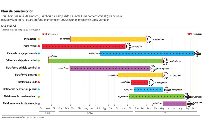 “Es precisamente hasta la última fase, con la construcción de la pista 3 que se tiene considerado agregar capacidad a la pista 1, de este modo las pistas 1 y 3 funcionarán de manera dependiente, pero esta dupla trabajará de manera independiente y con operaciones simultáneas respecto a la pista 2, a fin de cubrir la demanda máxima del aeropuerto en su etapa final”, puntualizó la Sedena.