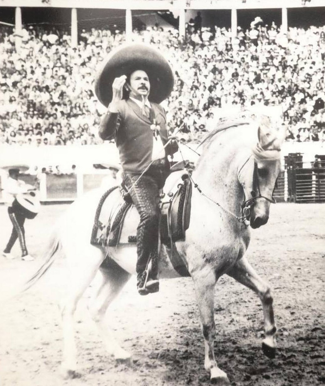 Además de participar en 167 películas, grabó ¡157 discos! y vendió 25 millones de ejemplares. Grabó más de 800 temas (muchos de ellos se repitieron en recopilaciones). Y lo largo de medio siglo recorrió el continente americano de cabo a rabo con un impresionante espectáculo ecuestre y de charrería, como no ha habido otro igual. Fundamentalmente, por verdadero. Entendido el tamaño del personaje, sigamos.