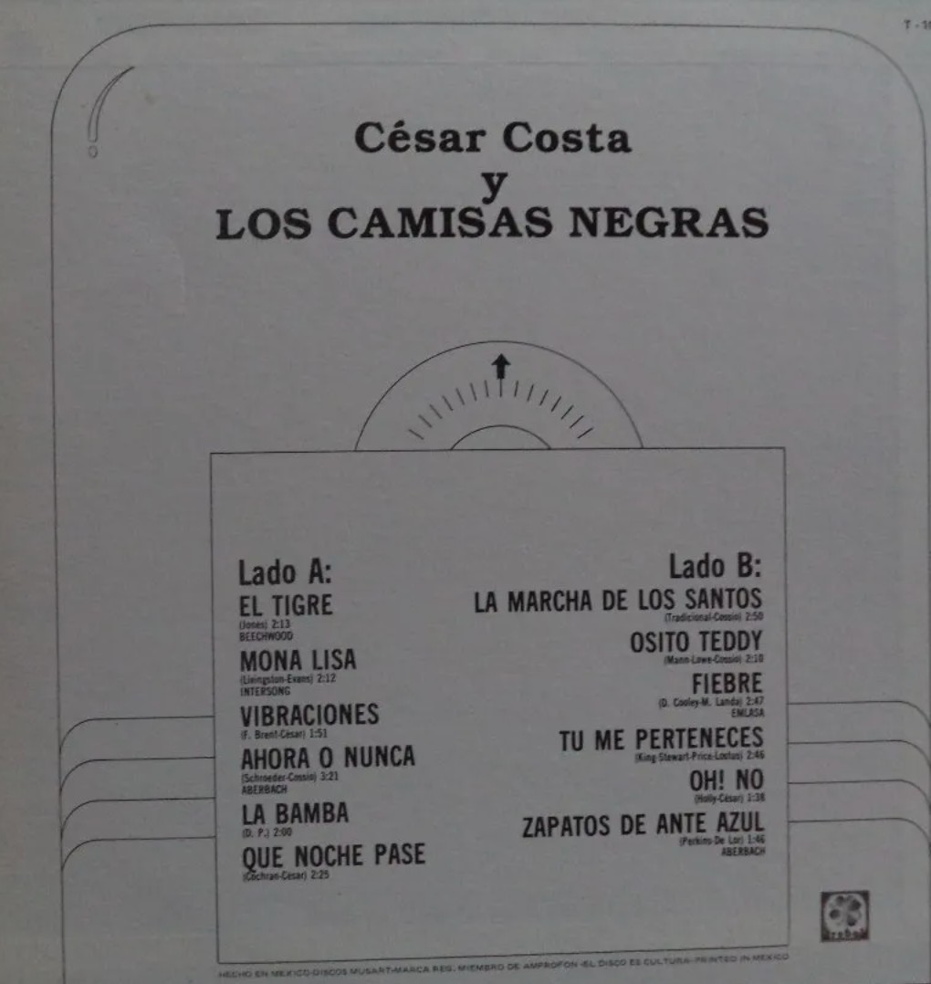 Los Camisas Negras no duraron mucho tiempo juntos. Graban un solo LP -hoy de colección-… pero acomodan varios éxitos. Entre ellos, El tigre, Osito Teddy, Mona Lisa, Zapatos de ante azul o Fiebre… con letra adaptada de César Costa. Los coros son de su hermana Karen, y de personajes entonces desconocidos como Leda Moreno y los Hermanos Carrión.