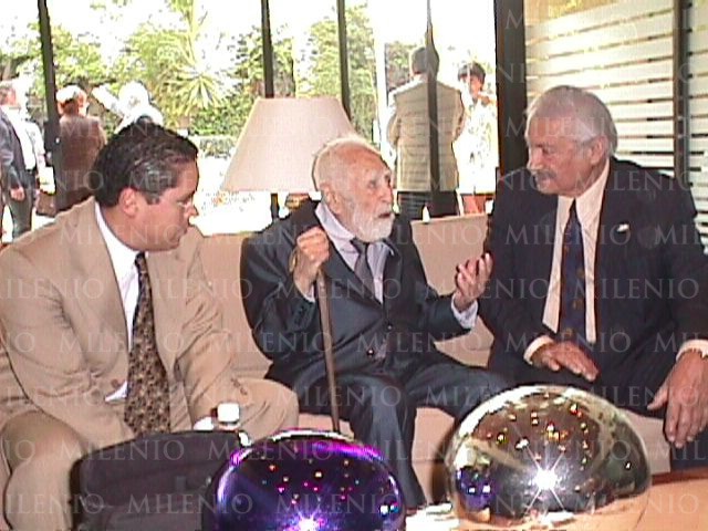 Acá de testigo cuando se reencontró con su descubridor cinematográfico, don Miguel Zacarías, que ese día le ofreció un nuevo papel. Un hombre de 95 y uno de 80, haciendo planes. Lección de vida. (Archivo Carlos Díaz-Barriga)
