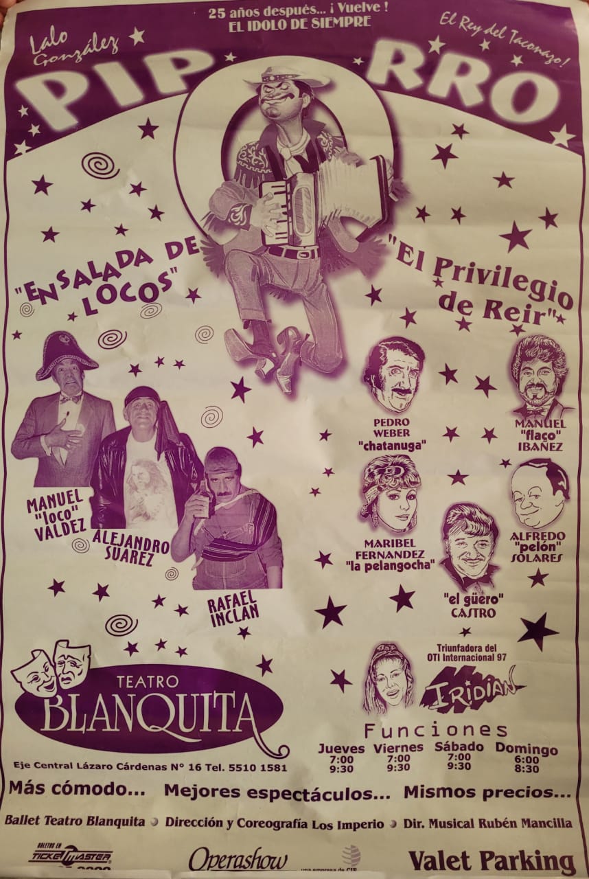 Cartel de su regreso al teatro Blanquita en la Ciudad de México. Elencazo irrepetible. (Archivo Carlos Díaz-Barriga)