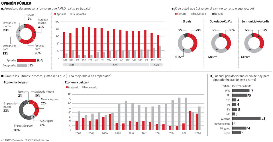 Encuesta cara a cara en vivienda. Representatividad: nacional. Número de entrevistas: 800 encuestas. Fecha de levantamiento: del 27 de febrero al 2 de marzo de 2020. Nivel de confianza estadística: 95%. Margen de error: (+/-) 3.5%. Diseño, muestreo, operativo de campo y análisis: Parametría SA de CV. Método de muestreo: aleatorio sistemático con probabilidad proporcional al tamaño.