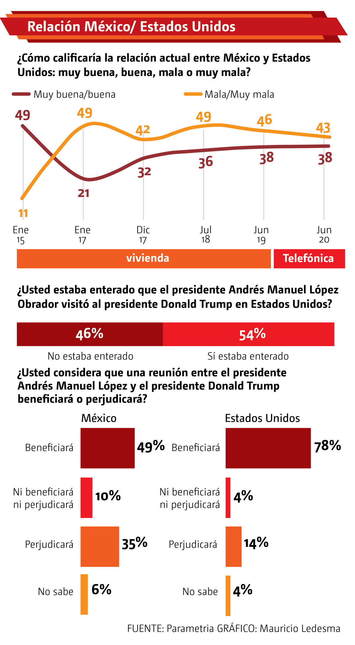 Sin embargo, más allá de si de los mexicanos quieren estar cerca de Estados Unidos, hay dos datos de la reciente visita que preocupan. La opinión sobre el presidente Trump y la idea de que esta visita va a beneficiar sobre todo a Estados Unidos, más que a México. Ciertamente resulta riesgoso ir a visitar al presidente probablemente más impopular de Estados Unidos de acuerdo con la opinión pública en nuestro país.Y que se perciba que el beneficio es mayor para nuestro vecino del norte más para nosotros.