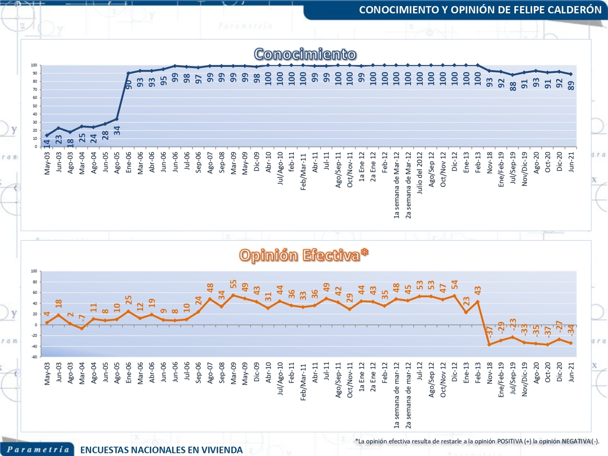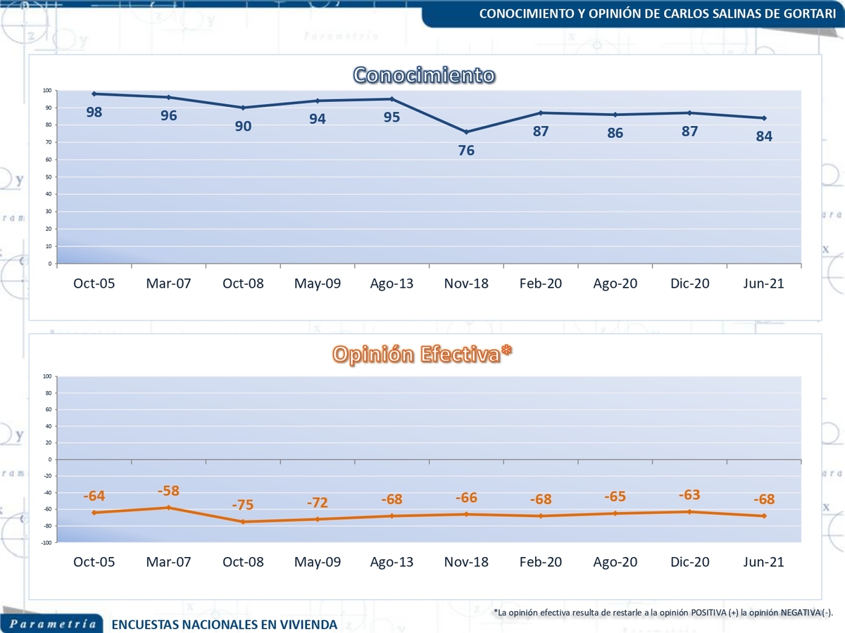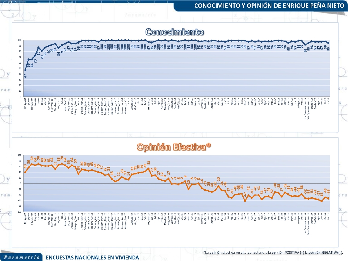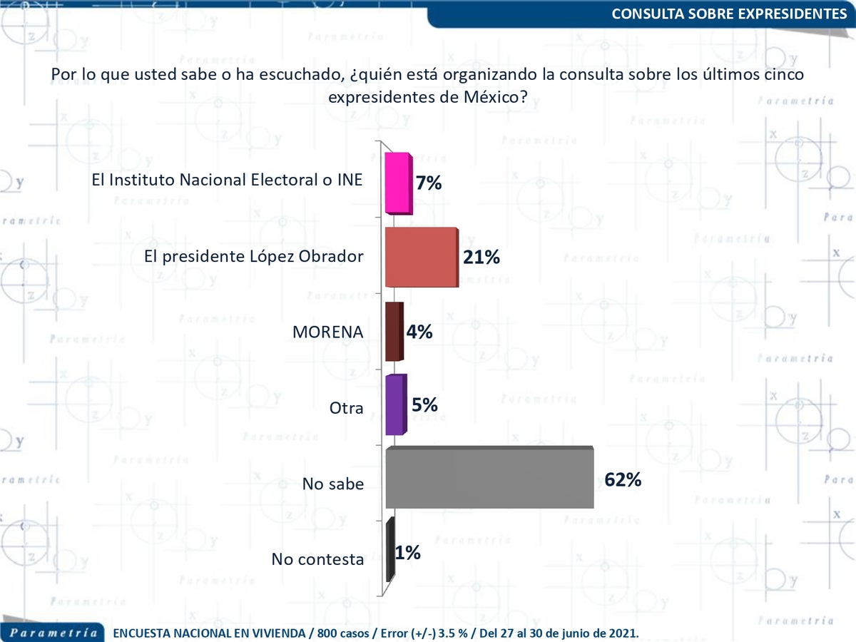La imagen de los expresidentes explica en buena medida la respuesta del ciudadano a la pregunta de la consulta. Todos ellos tienen una imagen negativa frente a la opinión pública. La más baja de todas es la del expresidente Carlos Salinas de Gortari y la menos negativa es la del expresidente Ernesto Zedillo. Es notable la forma en que ha cambiado la opinión del expresidente Felipe Calderón. Mientras había sido positiva hasta 2018, es evidente cómo empieza a bajar a partir de entonces. Lo que no sabemos es si esta evaluación es consecuencia de los ataques del actual Presidente a sus predecesores o responde a que en general suele haber una visión crítica de toda administración anterior.