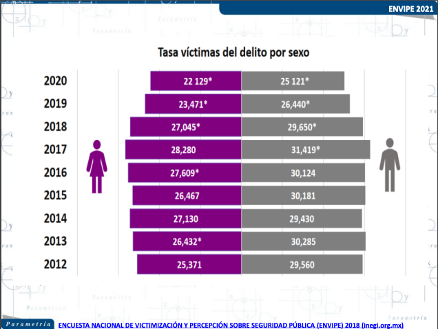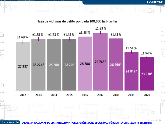 La tasa de víctimas de delito por cada 100 mil habitantes ha venido a la baja de 2017 a la fecha. Los dos últimos años podrían ser cuestionables porque son años de pandemia. En principio la gente estuvo más en sus hogares y hubo menos espacio para actividades delictivas.