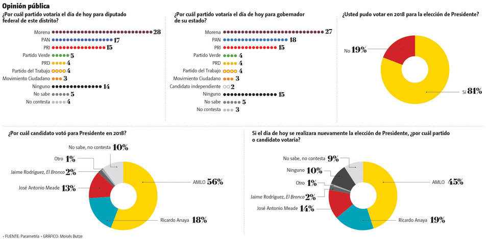 El hoy presidente López Obrador obtuvo 53 por ciento de las preferencias, es decir, ganó por mayoría absoluta. Durante el primer año de su administración este porcentaje fue validado por los ciudadanos y declaraban en diversas encuestas que volverían a votar por él.