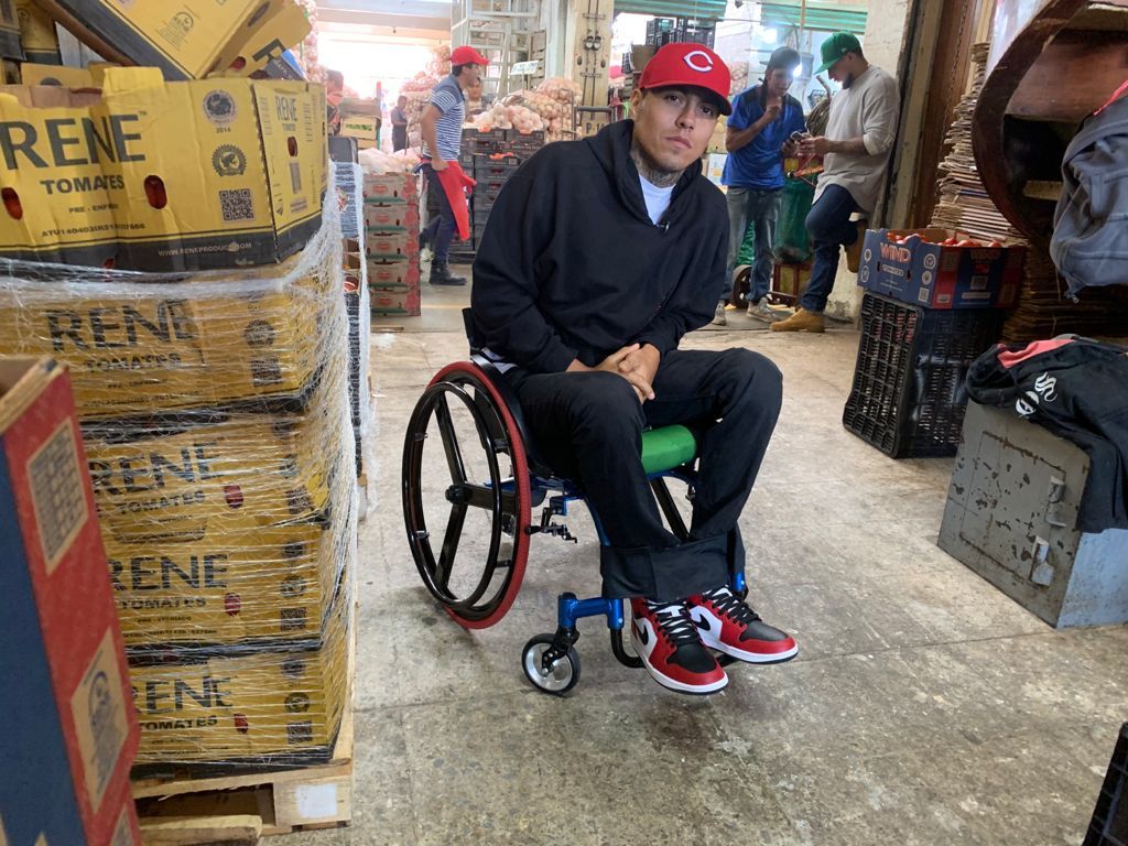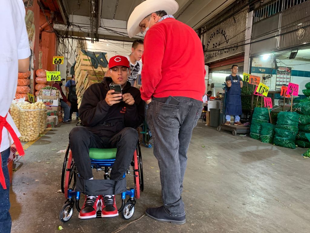 Y desde una silla de ruedas, valiéndose por sí mismo, sostiene su teléfono y mira con una sonrisa la pantalla, mientras con la otra mano sopesa la fruta y realiza operaciones; más tarde retomará sus viajes en avión para tratar con productores de Sinaloa y otros estados.