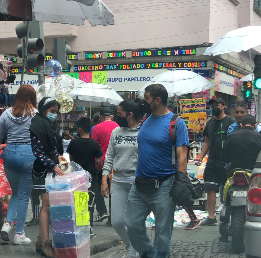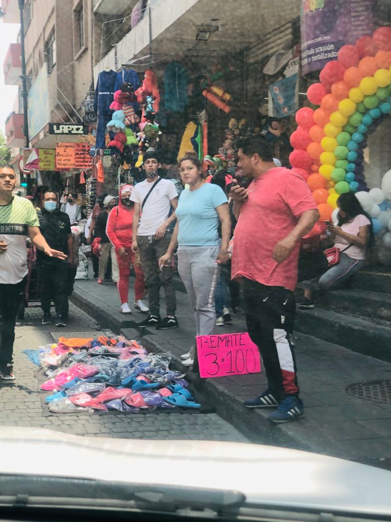 Y a desandar avenida Juárez hasta el eje vial Lázaro Cárdenas, el cruce más transitado de personas, y a girar hacia la derecha, donde se desparrama el comercio sobre banquetas donde aguardan toreros en sus marcas…