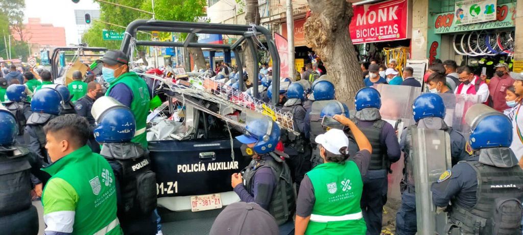Es jueves. Una mujer encara a empleados que no escuchan razones y cargan con su mercancía. Ellos cumplen órdenes, pues en la Alameda Central está prohibido el comercio; tampoco pueden rodar bicicletas y patines, pero los polis ni chistan frente a quienes esquivan y atropellan peatones.