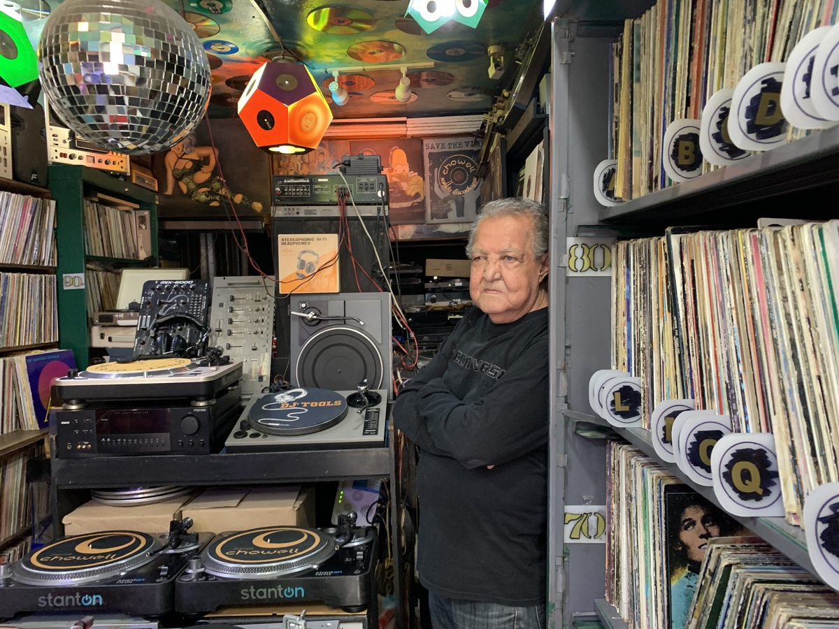 —Lo que pasa —responde con voz pausada— es que el disco siempre me ha gustado, pero llegó la cosa de la edad y pensé que si el gusto por la música es lo mío, pues voy a dedicarme a la venta de discos, ¿no?, y me empecé a desenvolver en esto.