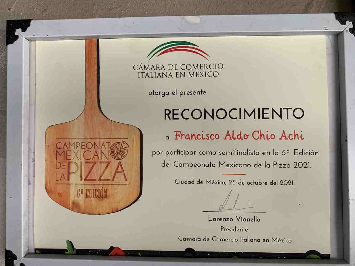 —Ganamos este año el campeonato Pizza México en la ciudad de Cholula, Puebla; ahí vino el chef Pasquale Cozzolino, autor del libro Pizza Diet, a impartir un Máster Class. Primer lugar en pizza napolitana y primer lugar en pizza contemporánea.