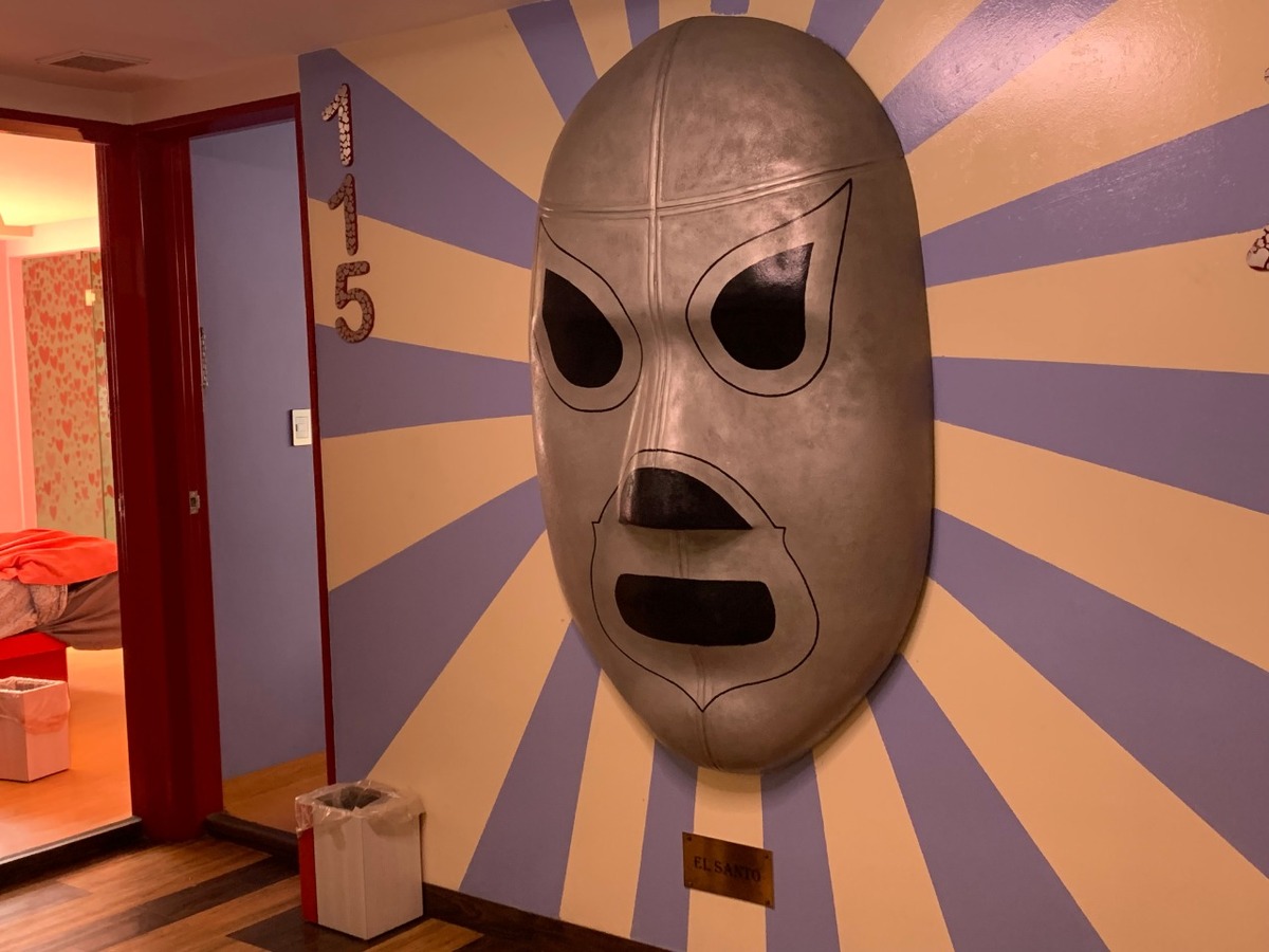 —Sí, te digo, por todo ese historial que traíamos, pues al final decidimos decorarlo y ambientarlo con motivos de lucha, los diseños son especiales para este hotel; las máscaras, te digo, son de aluminio y se fundieron en el taller del maestro Miguel Peraza.