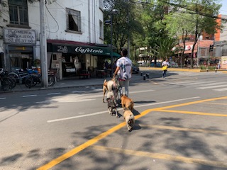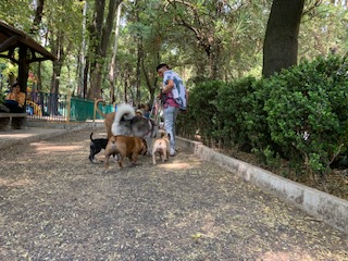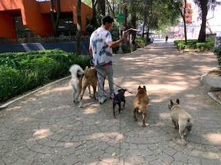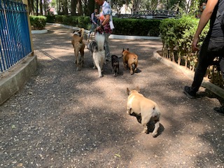 Fernando trae a su cargo seis perros de diferentes razas. Tres de ellos son adoptados. Les habla por sus nombres y obedecen sin remilgos. Los conduce a un claro terroso del Parque México. Los perros se acuestan y duermen un rato a la sombra de árboles. Fernando dice que está a punto de llegar la hora de repartir a sus perritos, como les dice, en domicilios de las colonias ya mencionadas, por lo que debe hacer otras caminatas y al final retornar a su casa, en Cuautitlán Izcalli, donde lo espera su familia.
