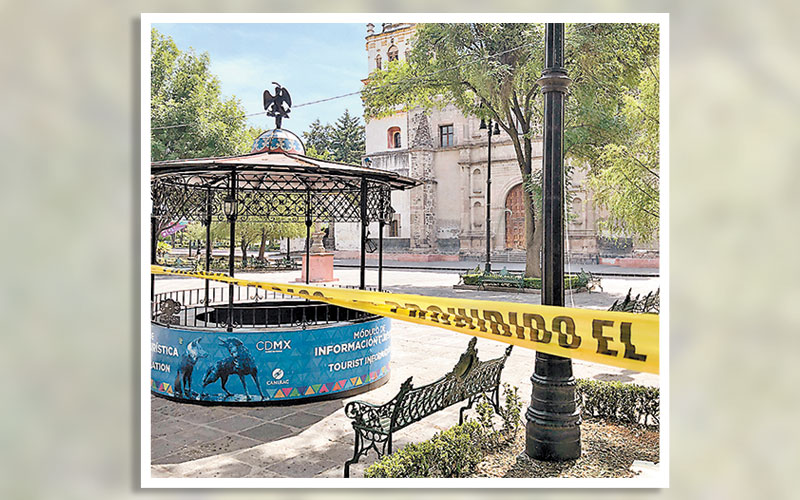 El centro de Coyoacán siempre está lleno en domingo. A las 11 de la mañana la Parroquia de San Juan Bautista suele abarrotarse de católicos, y más si se trata del Domingo de Pascua. Hoy no es así: el templo está cercado por listones que prohiben el paso, como si se tratara de la escena de un crimen. Unos cuantos policías disuaden a los pocos feligreses que pretenden acercarse al atrio, a las puertas del convento barroco del siglo XVI. La zona está desierta, la habitual romería dominical, de golosinas y antojitos, como esquites y elotes con chile, ha desaparecido.