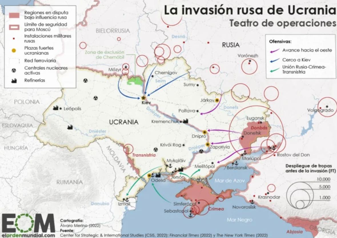 9. Negociaciones de paz. Parece, por lo que se filtra de las negociaciones en Turquía, que estamos cerca de un alto el fuego bilateral, que podría llevar en el futuro a un acuerdo sobre el estatus de neutralidad para Ucrania y el compromiso de no adhesión a la OTAN. En realidad, la ofensiva militar de Rusia y la ocupación del territorio nunca han tenido la voluntad de ser permanentes, sino de garantizar que la retirada será a cambio de cerrar el debate sobre la OTAN en Ucrania. Encima de la mesa también, el reconocimiento de Crimea y Dombás, pero se podría encontrar un punto de acuerdo intermedio en la desmilitarización de Ucrania para impedir que se repita lo sucedido entre 2014 y 2022, 8 años en los que Estados Unidos ha financiado el bombardeo de civiles en Donetsk y Lugansk, mediante la inversión de 5.000 millones de dólares en armamento, equipo e instrucción militar.
