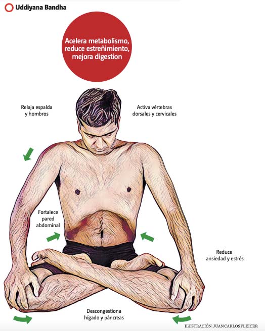 El plexo solar tiene muchas influencias sutiles en la distribución de la energía por todo el cuerpo. Esta contracción canaliza el prana o energía vital hacia el interior del canal central y estimula la actividad de este centro de conciencia de donde surge la acción, la voluntad, el equilibrio y el poder personal.