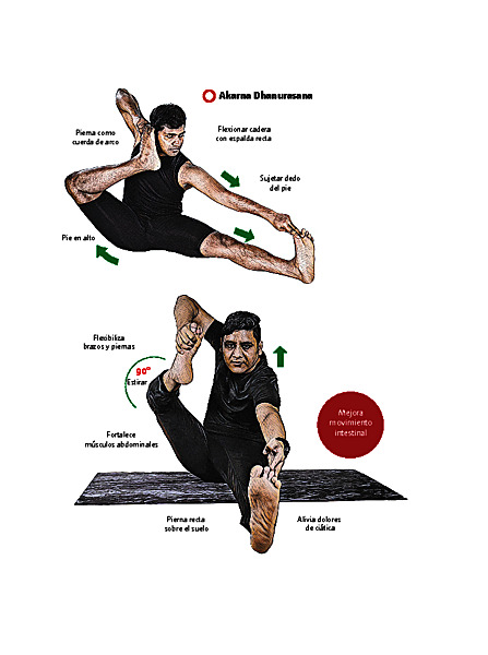 Para armarla, el Hatha Yoga Pradipika, el texto más antiguo que existe sobre hatha yoga, apunta: “Sujete los dos dedos de los pies con las manos, el de la izquierda con esa misma mano y lo mismo con el lado derecho. Mantenga una pierna recta y lleve la otra a la oreja como lo haría con la cuerda de un arco.”