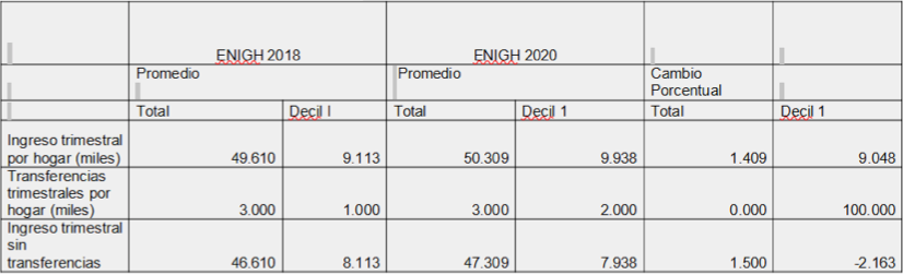 Tabla 2. Ingresos de los hogares 2018 y 2020. Fuente: INEGI, Encuesta Nacional de Ingreso y Gasto en los Hogares (ENIGH).
