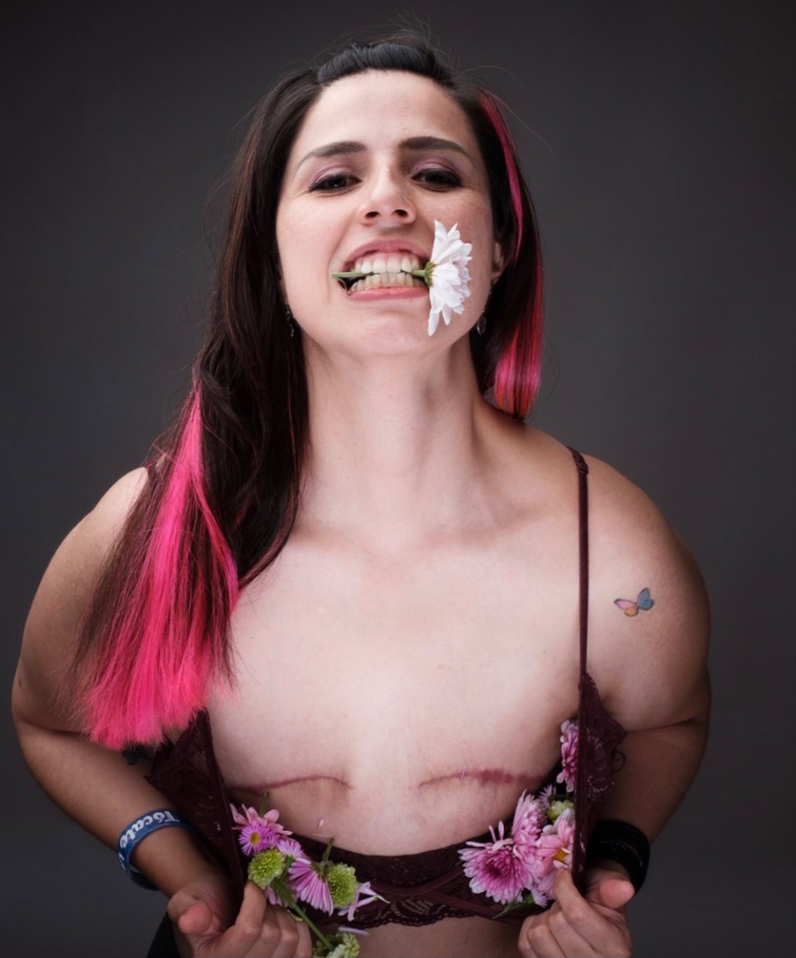 ‘’Al no tener pechos, mi corazón quedó de frente’’ me dijo Sandra Monroy, una mujer de 36 años, comunicóloga y fotógrafa a quien conocí a través de una entrevista para el Telediario. Sandra fue diagnosticada con cáncer de mama en marzo de 2021 y cuatro meses después, en julio, le habían extirpado ambos senos. Aún con la posibilidad de realizarse una reconstrucción de mamas, abandonó esa opción y optó por reconstruir su mente para luchar por la libertad de su cuerpo.