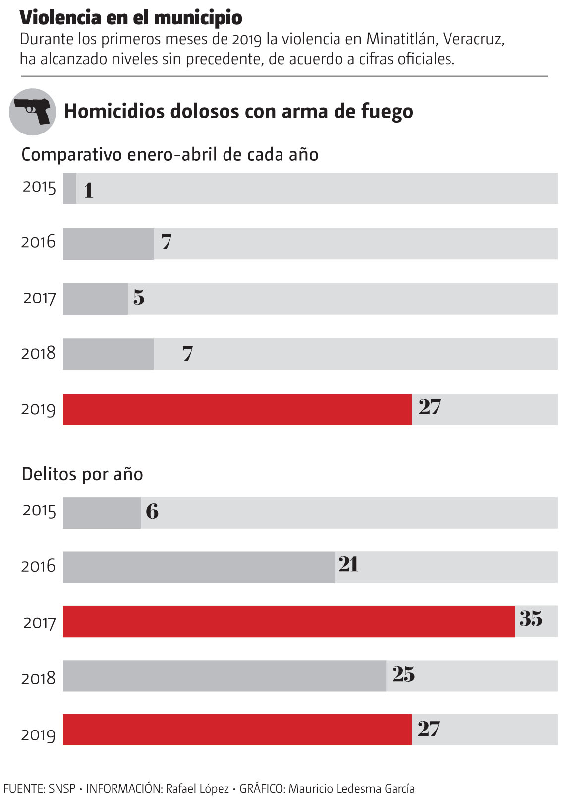 De hecho, con base en cifras del Secretariado Ejecutivo del Sistema Nacional de Seguridad Pública (SNSP), se tiene que en los tres meses y medio que van de 2019, en Minatitlán ya hubo más homicidios que en todo el año pasado.